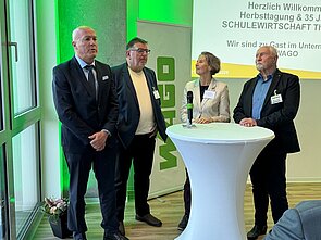 Bereits zu Beginn gab Marcel Matzschke, Leiter Ausbildung bei WAGO Sondershausen, einen Einblick in die Produktion und machte deutlich, wie essenziell gut vorbereitete Berufseinsteigerinnen und -einsteiger für mittelständische Industrieunternehmen sind. Die Landesvorsitzenden Thomas Umbreit (Schule) und Albrecht Gölz (Wirtschaft) eröffneten die Veranstaltung und erinnerten daran, dass SCHULEWIRTSCHAFT Thüringen seit 1990 zu den verlässlichen Partnern an der Schnittstelle zwischen Bildungssystem und Arbeitsmarkt gehört.